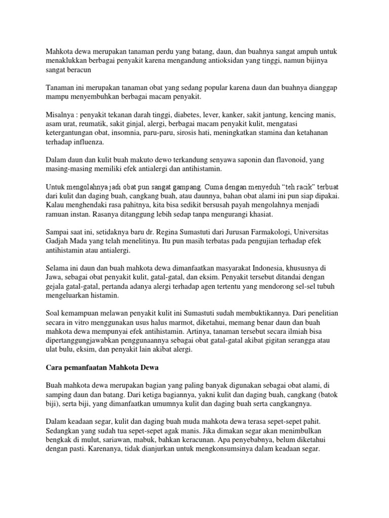 Buah Mahkota Dewa Beracun / Buah mahkota dewa mengandungi beberapa bahan aktif seperti. Buah mahkota dewa ini merupakan salah satu ramuan herbal alami yang dicari banyak orang baik pria maupun wanita. Berandaberita terbarumanfaat mahkota dewa, beracun tapi ampuh atasi diabetes, tumor dan penyakit kulit. Bentuknya bulat lonjong berdiameter sekitar 1cm & berwarna coklat, bahagian dalam berwarna putih. Kemudian tanaman mahkota dewa menjadi lebih terkenal setelah buah dari tanaman ini dikembangkan dan digunakan dalam. Rebus potongan daging buah mahkota dewa yang sudah kering.
