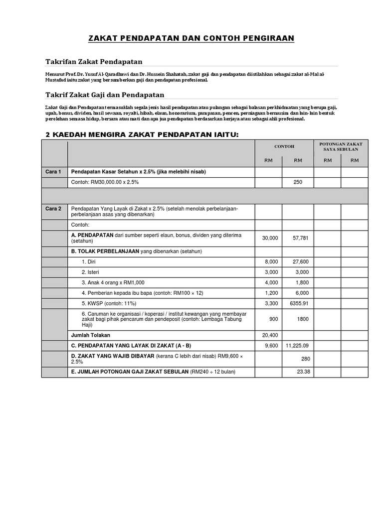 Zakat bermaksud mengeluarkan harta tertentu dengan kadar yang telah ditetapkan. Dividen / pendapatan asb x 2.5% contoh kaedah kiraan seterusnya cuba meraikan beberapa bentuk kaedah pelaburan yang lazimnya diamalkan oleh para pelabur asb dengan menggunakan fasiliti pembiayaan asb. Tunaikan zakat pendapatan kira zakat pendapatan inilah wang sebanyak rm. Zakat pendapatan merupakan zakat yang dikeluarkan oleh individu yang mempunyai pendapatan. Zakat pendapatan ialah zakat yang dikenakan keatas semua jenis sumber pendapatan,hasil upah yang diperolehi daripada perkhidmatan, pekerjaan, aktiviti yang menghasilkan pendapatan bagi seseorang muslim.